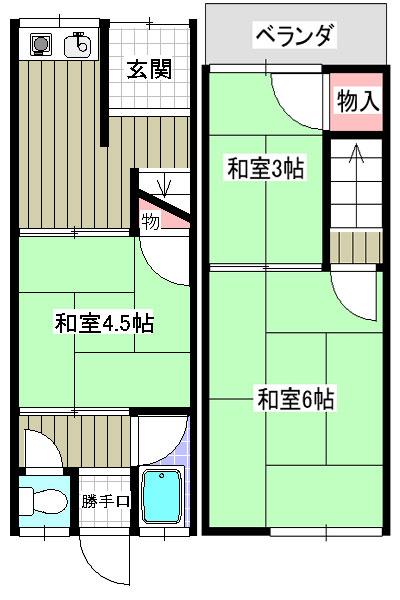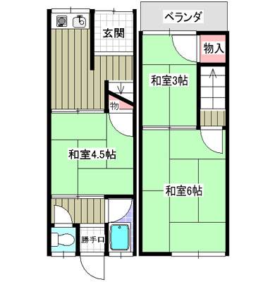 1階/K約3帖・和室4.5帖 2階/和室6帖・洋室3帖 |