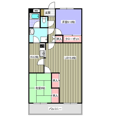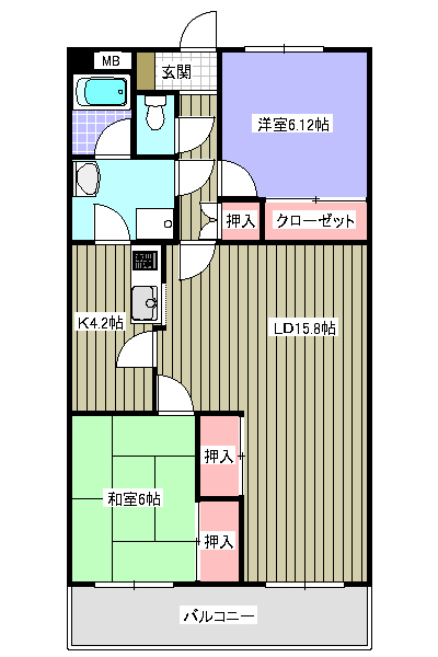 洋室約6帖/和室約6帖/LDK約15.8帖 |