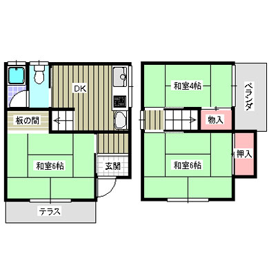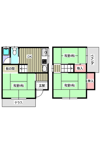 1階/K4.5帖・和室6帖 2階/和室6帖・洋室4帖 |